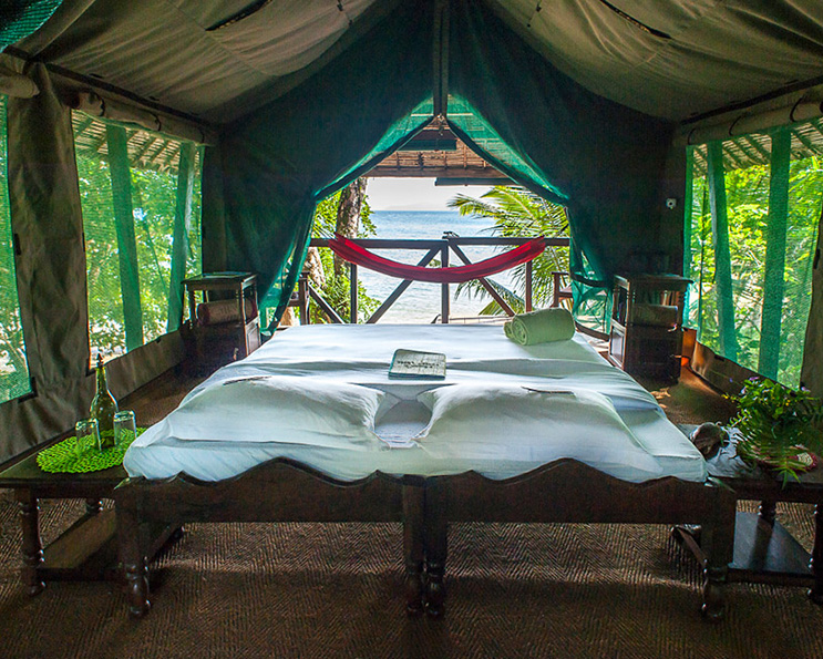 Nestled in a cove of golden sand and blue water, at the meeting of rainforest and sea, a luxurious outpost await