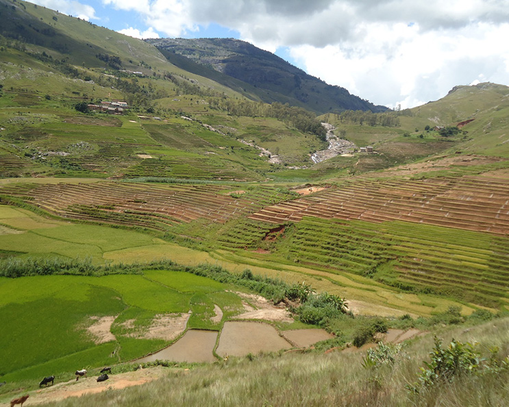Drive through the different types of the Malagasy dramatic landscapes: Hills , rice fields , terraced rice fields , crater lakes , massifs , rain and dry forest , waterfall ,savannah and bush .