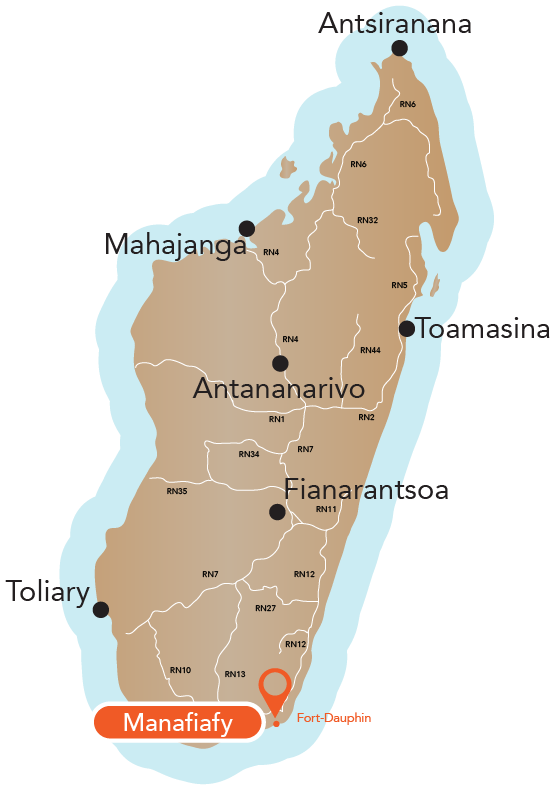 Manafiafy, également connue sous le nom de Sainte-Luce, est une magnifique baie de sable blanc, bordée de montagnes boisées et de mangroves riches en faune.